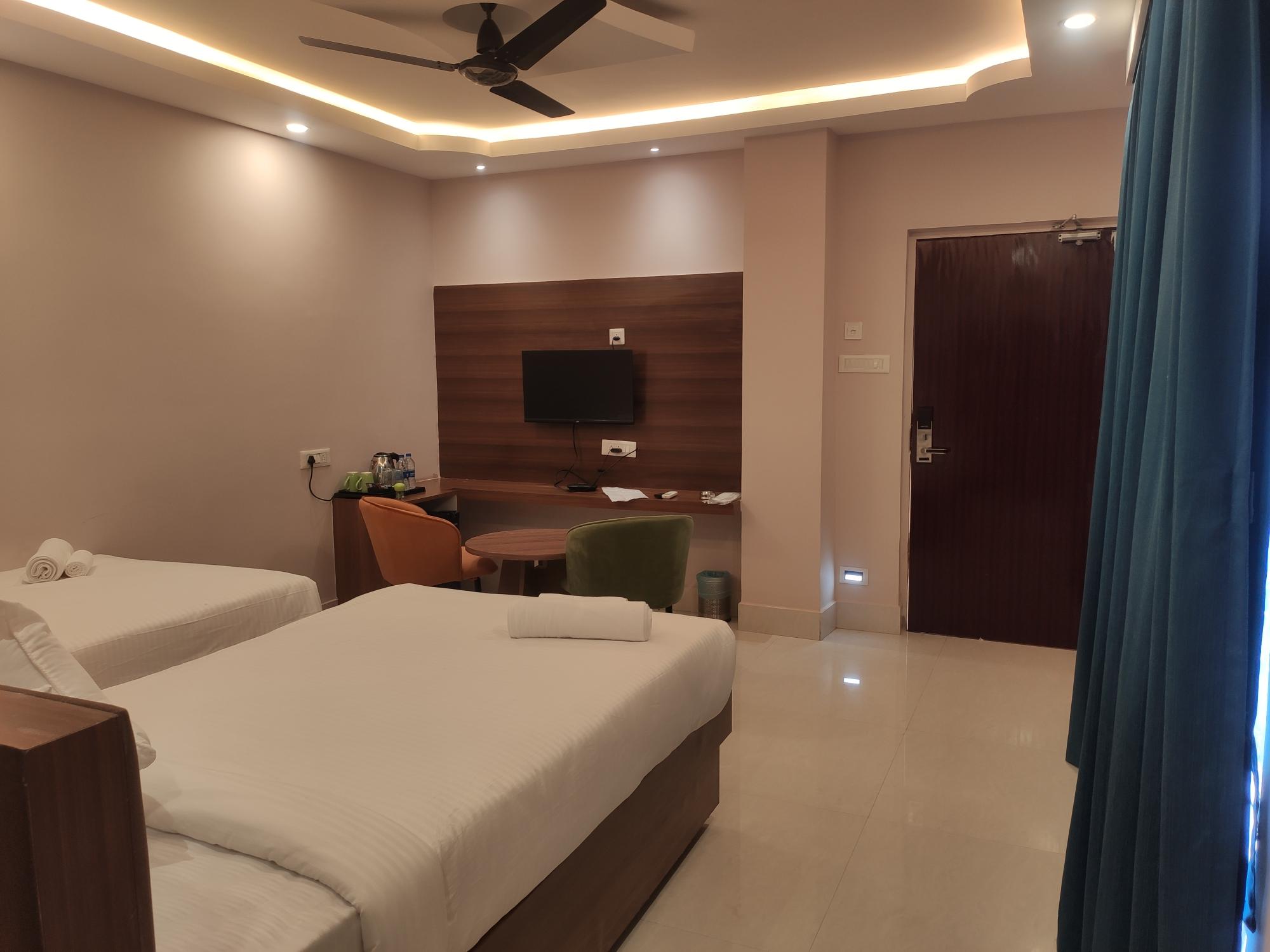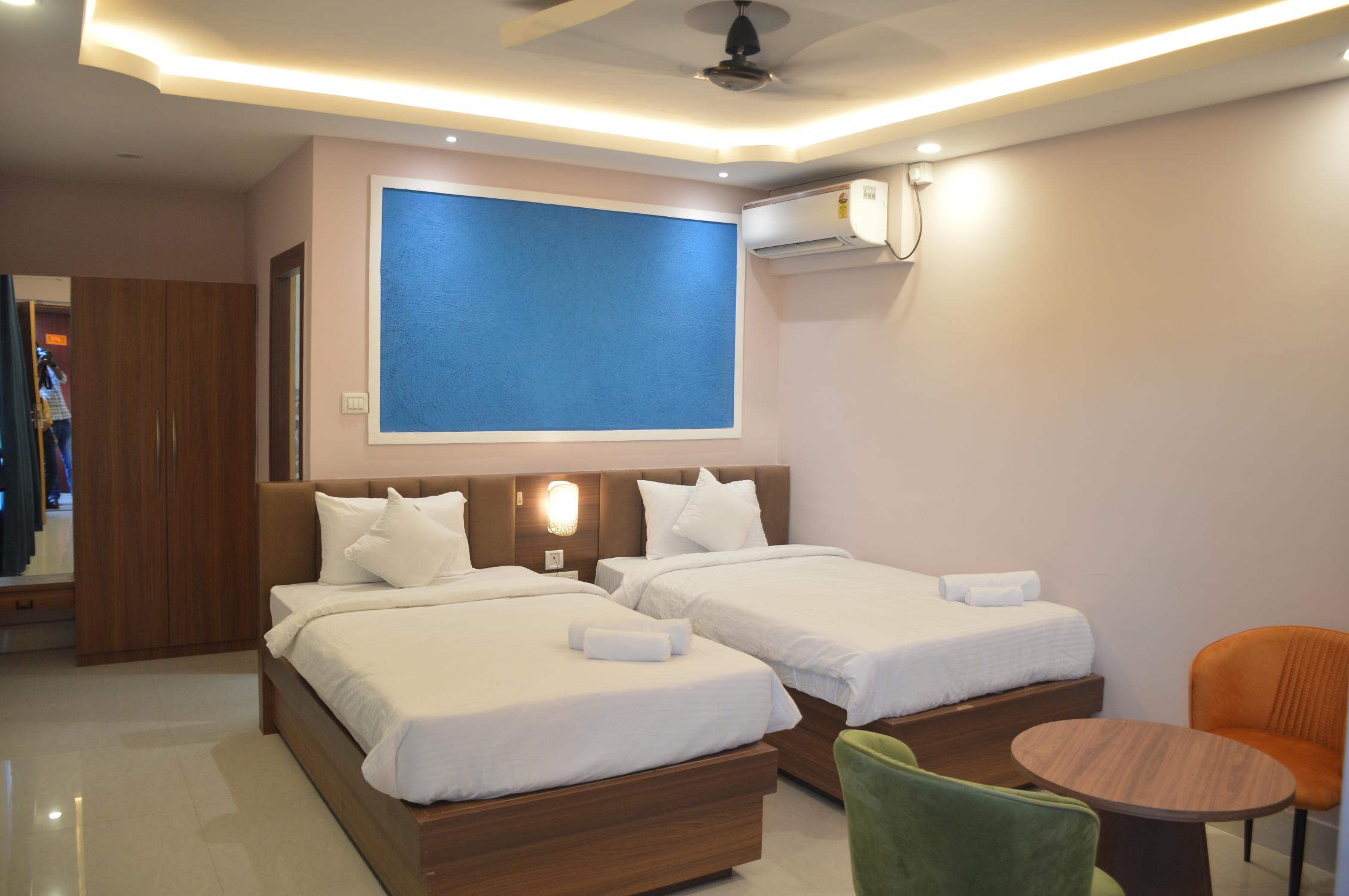 Spacious and Stylish : The Super Deluxe Twin Bed Room offers a more spacious environment, covering 260 square feet, ideal for friends or family members travelling together. The room is furnished with two comfortable twin beds, providing ample space for relaxation and rest. The stylish décor reflects a blend of modern aesthetics and traditional charm, creating a welcoming ambiance.